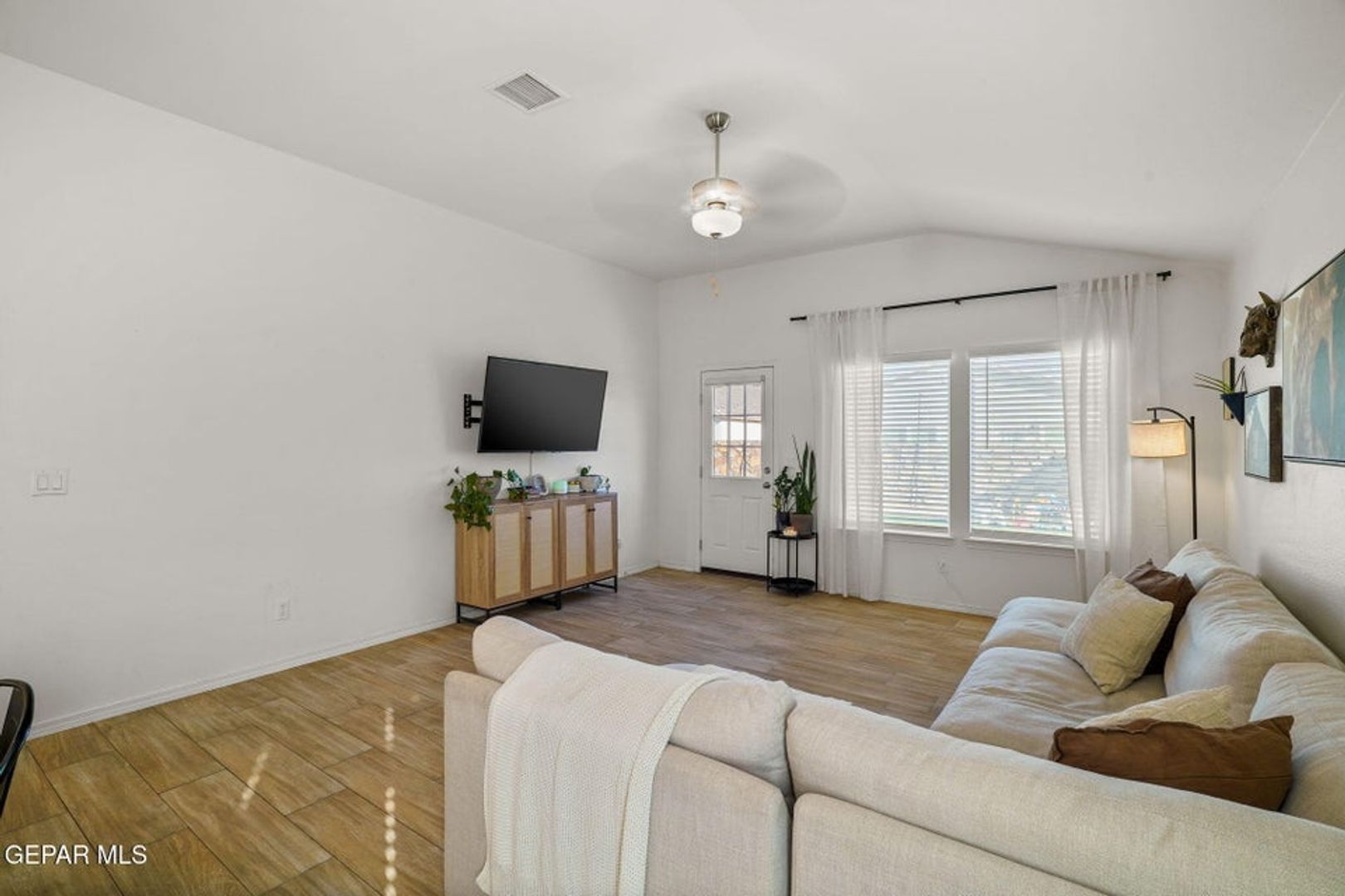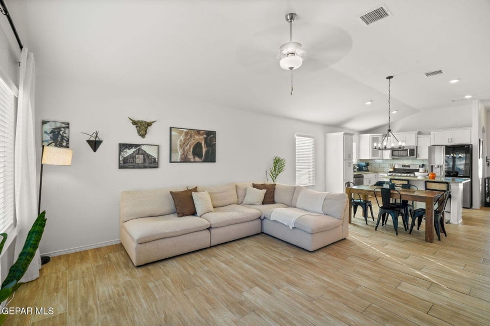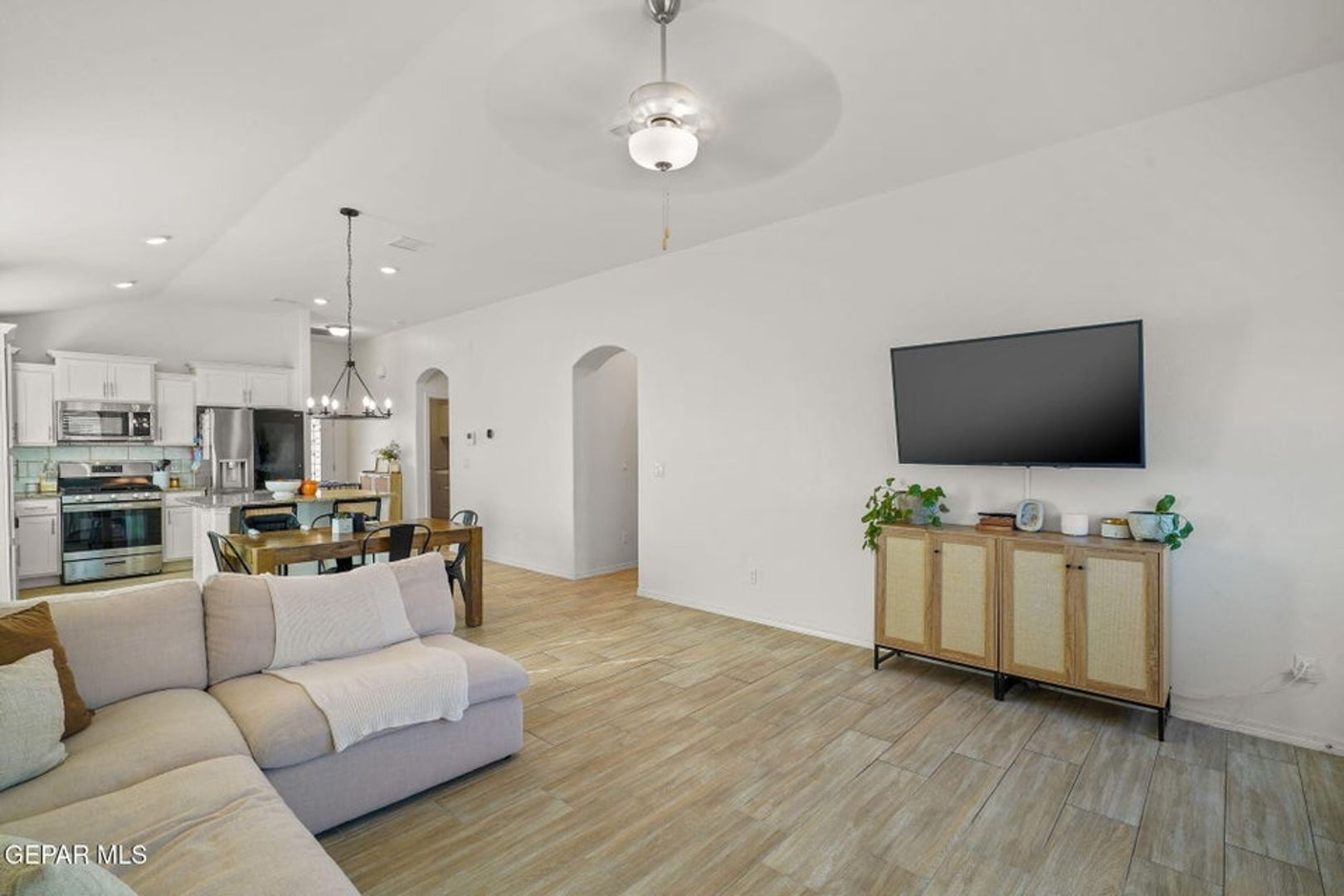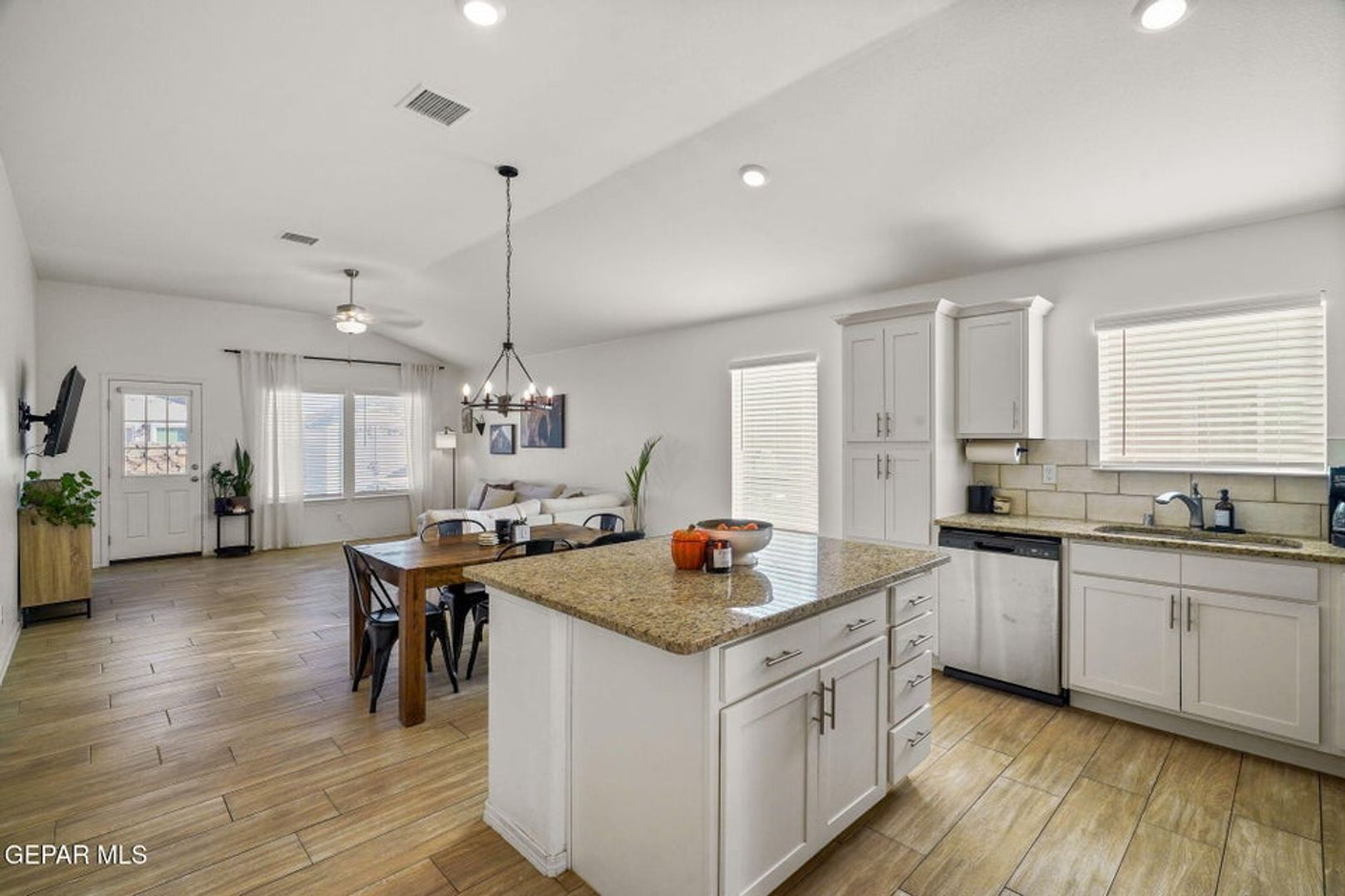 This charming 4-bedroom, 2-bath home offers 1,487 square feet of well-designed living space. The open-concept floor plan seamlessly connects the living, dining, and kitchen areas, making it perfect for everyday living and entertaining. The kitchen and bathrooms feature granite countertops, while the bedrooms offer comfortable, spacious layouts. Enjoy refrigerated air and a beautifully landscaped backyard with low-maintenance artificial grass—combining style, comfort, and functionality.