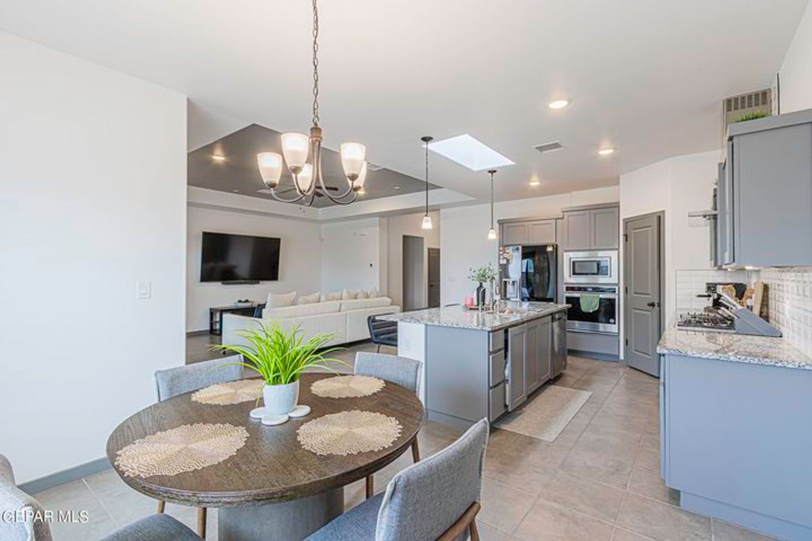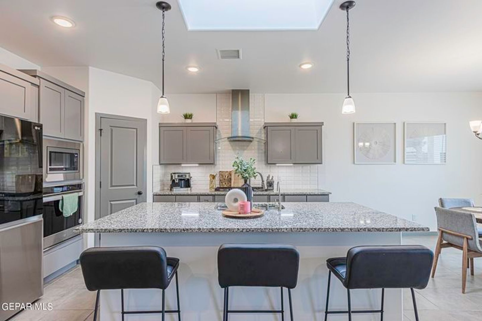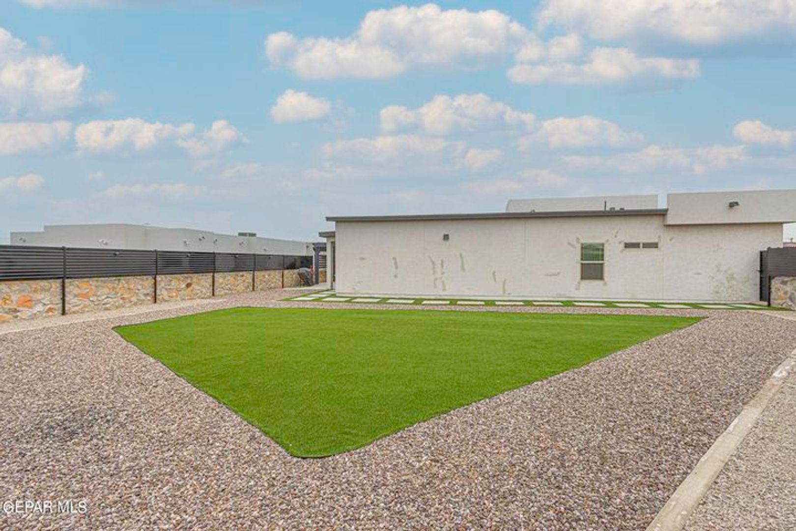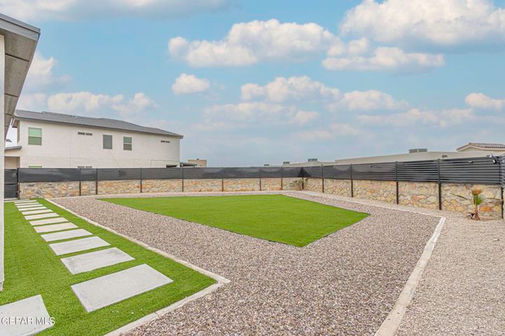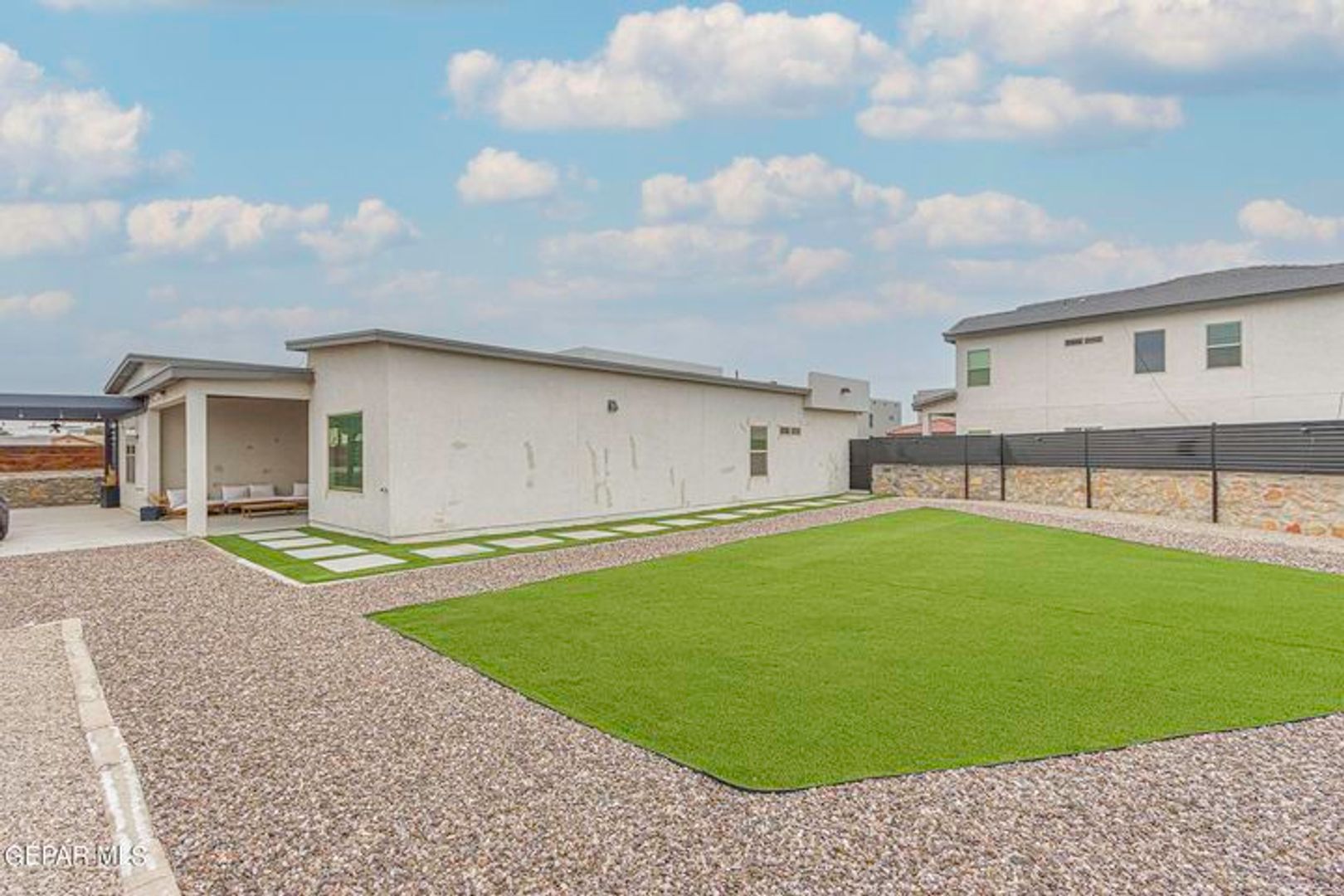 This spacious 3-bedroom, 3-bath home offers comfort, style, and convenience in a prime location near Rojas. Enjoy an open-concept layout with a large kitchen featuring both an island and a peninsula—each with bar seating—perfect for cooking, gathering, or entertaining. The home includes a private en-suite bedroom ideal for guests or in-laws, and a generous living area with French doors that open to a beautifully landscaped backyard complete with turf, a pergola, bird station, and extended concrete patio. The primary suite features a jetted tub, walk-in shower, and roomy walk-in closet. Additional highlights include an epoxy-coated, insulated garage with built-in shelving, a drip system with garage controls, and modern curb appeal. Conveniently located near shopping, dining, and easy freeway access to I-10 and Loop 375. This one has it all—space, upgrades, and a fantastic location!