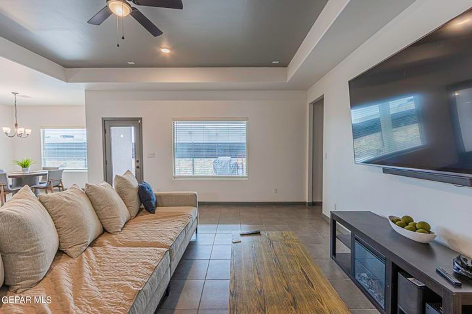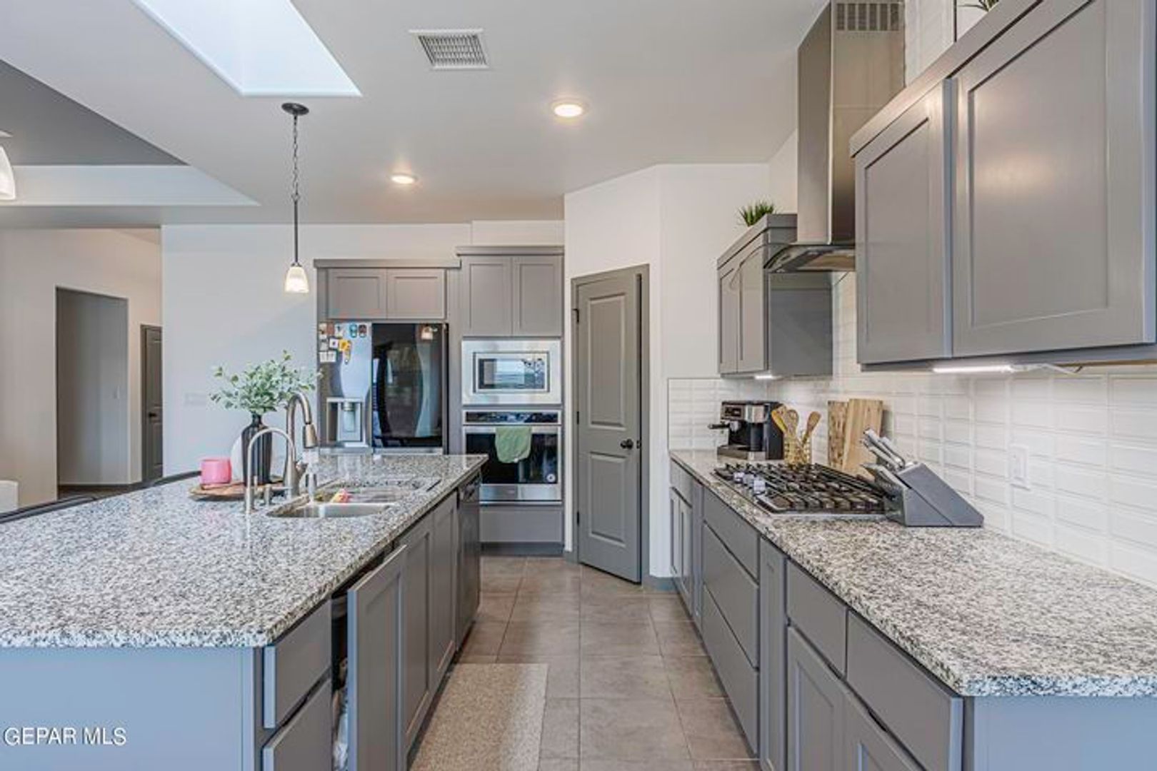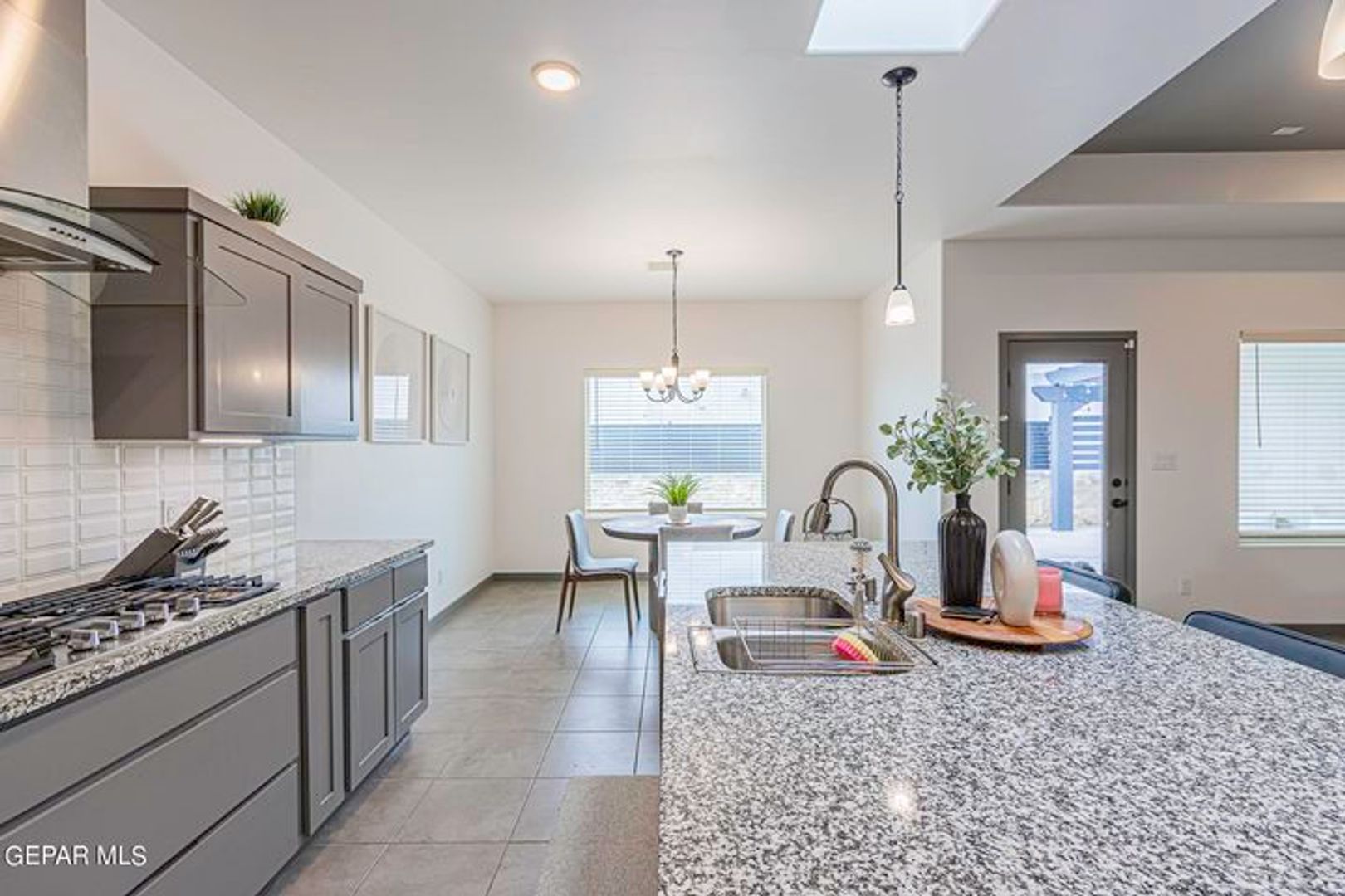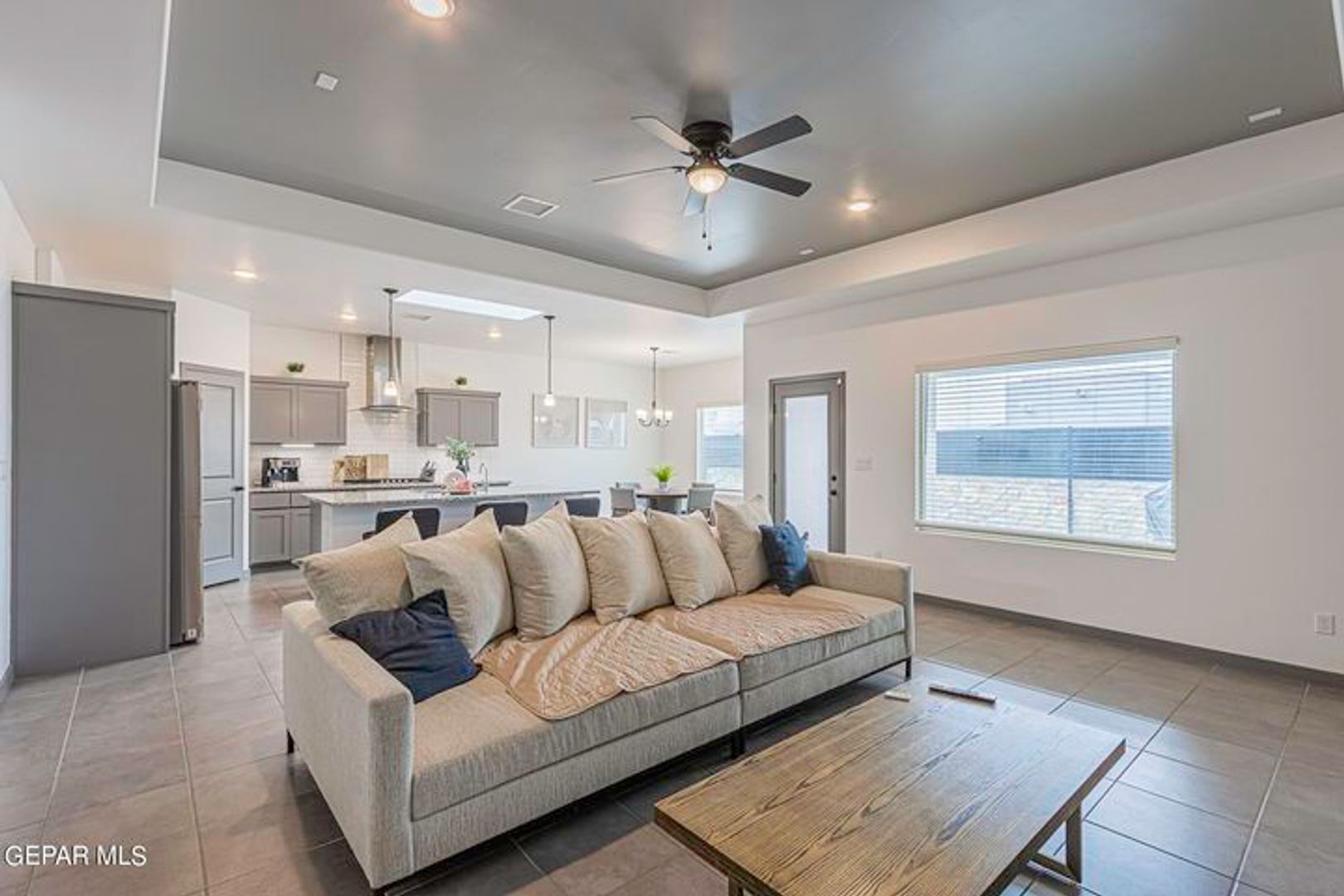 This spacious 3-bedroom, 3-bath home offers comfort, style, and convenience in a prime location near Rojas. Enjoy an open-concept layout with a large kitchen featuring both an island and a peninsula—each with bar seating—perfect for cooking, gathering, or entertaining. The home includes a private en-suite bedroom ideal for guests or in-laws, and a generous living area with French doors that open to a beautifully landscaped backyard complete with turf, a pergola, bird station, and extended concrete patio. The primary suite features a jetted tub, walk-in shower, and roomy walk-in closet. Additional highlights include an epoxy-coated, insulated garage with built-in shelving, a drip system with garage controls, and modern curb appeal. Conveniently located near shopping, dining, and easy freeway access to I-10 and Loop 375. This one has it all—space, upgrades, and a fantastic location!