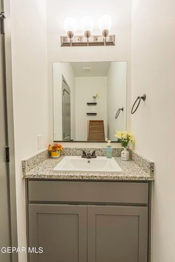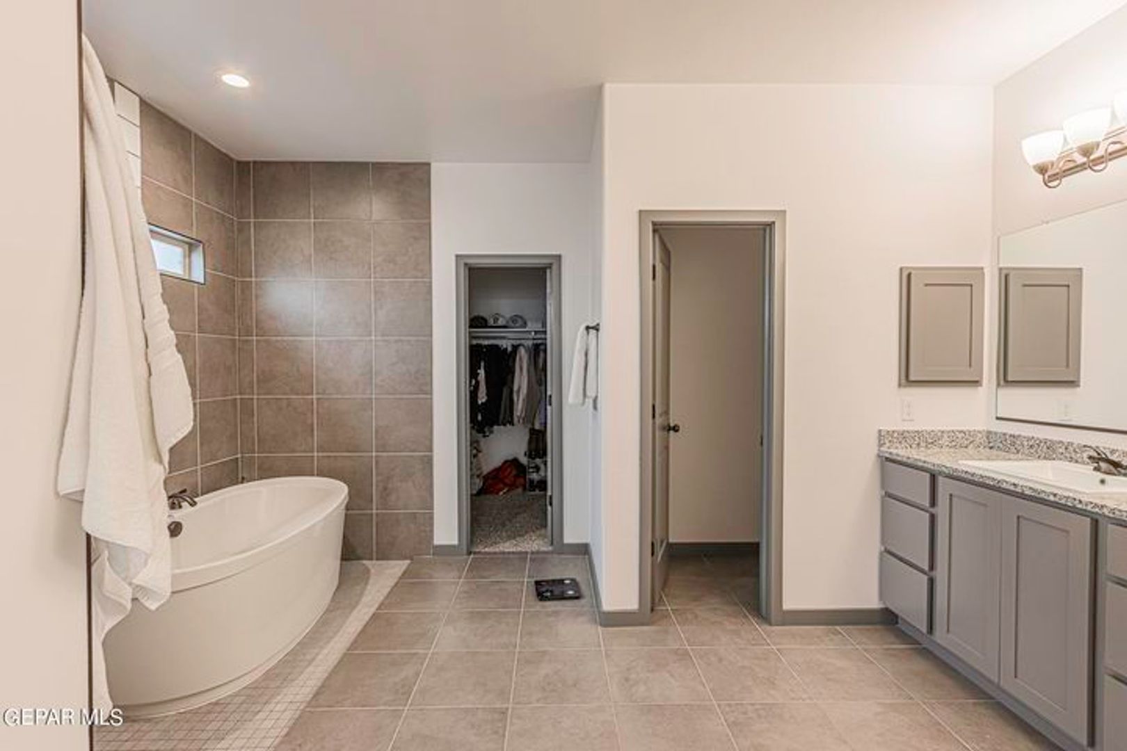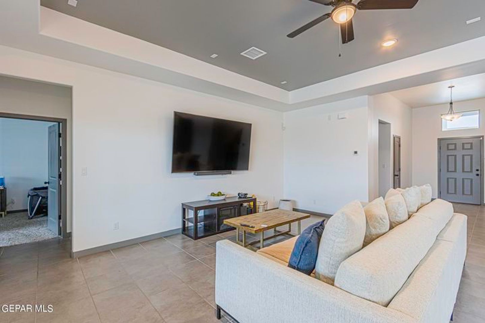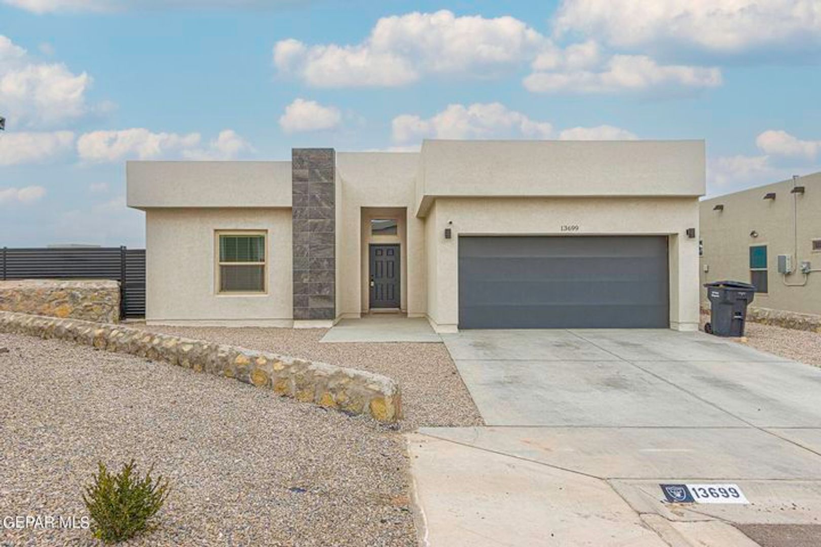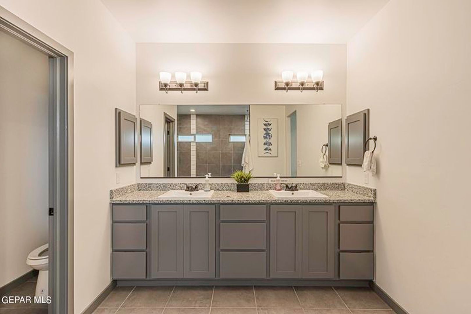This spacious 3-bedroom, 3-bath home offers comfort, style, and convenience in a prime location near Rojas. Enjoy an open-concept layout with a large kitchen featuring both an island and a peninsula—each with bar seating—perfect for cooking, gathering, or entertaining. The home includes a private en-suite bedroom ideal for guests or in-laws, and a generous living area with French doors that open to a beautifully landscaped backyard complete with turf, a pergola, bird station, and extended concrete patio. The primary suite features a jetted tub, walk-in shower, and roomy walk-in closet. Additional highlights include an epoxy-coated, insulated garage with built-in shelving, a drip system with garage controls, and modern curb appeal. Conveniently located near shopping, dining, and easy freeway access to I-10 and Loop 375. This one has it all—space, upgrades, and a fantastic location!